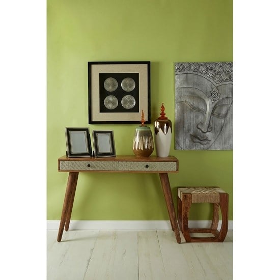 untuk "View Natural Wood Console Table With Drawers PNG"